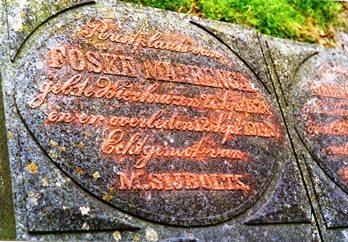 Rustplaats van FOSKE MARRENGA, geb. te Wierhuizen 27 Sept. 1828, en er overleden 12 Sept. 1914. Echtgenoot van M. SIJBOLTS - Slaap, lieve Moeder, zacht, Uw dagtaak is volbracht, Wij legden U ter ruste Vervuld van dankbaarheid, Voor al de goede zorgen Door U aan ons gewijd.